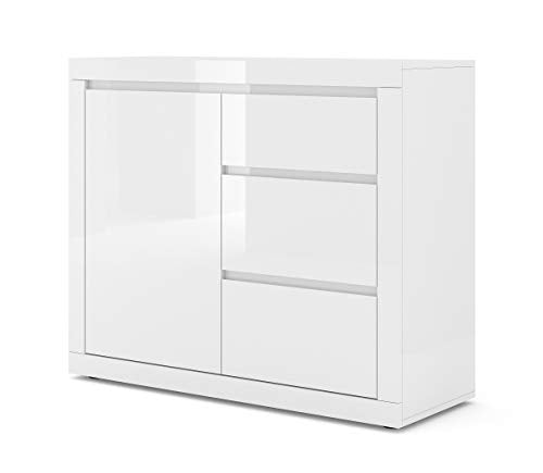 BIM Furniture Bello Bianco II 105 cm credenza alta credenza armadio bianco opaco / bianco lucido uno scaffale a tre cassetti italiani