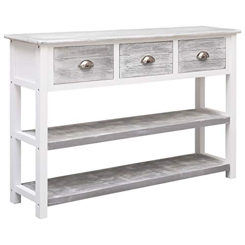 vidaXL Credenza Mobile con Ripiani e Cassetti Robusta Pratica Tavolino Laterale Salotto Grigio Anticato 115x30x76 cm in Legno Pioppo e Paulownia