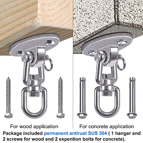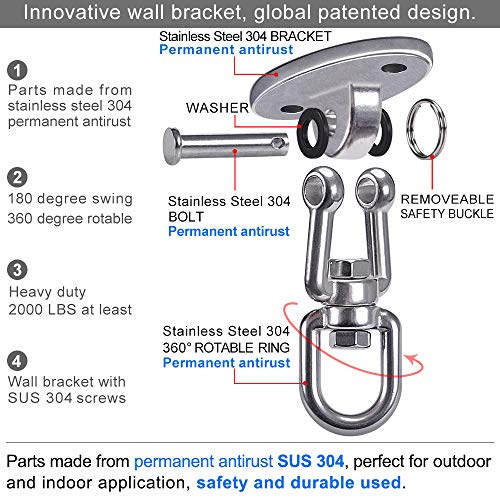 - TUTTI I CAVI DELL'INDUSTRIA FATTA DI SUS304 GRADI DI ALIMENTAZIONE IN ACCIAIO INOSSIDABILE DEL 100% RUGGINE PERMANENTE, APPENDIABITI INDUSTRIALI COSTRUITI DI ALTA QUALITÀ, staffe oscillanti perfette per tutti i prodotti dell'oscillazione all'interno o all'esterno, inclusi soffitti a molle o supporti in legno, anelli per ginnastica e yoga aereo sospeso inversione trapezio altalena posti.