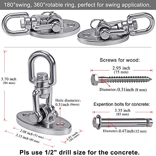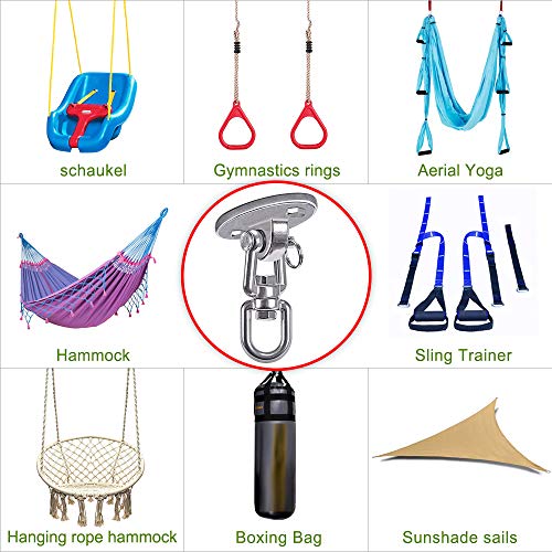 1100KG Capacità Acciaio inossidabile 360° Ruote gancio appendiabiti, gancio soffitto, gancio altalena con bullone per calcestruzzo Set di legno Parco giochi per bambini Outdoor Seat Trapeze Yoga, GYM