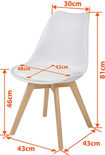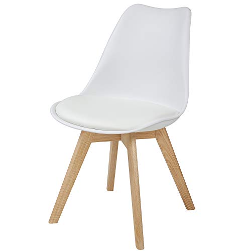 Albatros Sedie da Pranzo AARHUS Set di 4, Bianco con Gambe in Legno Massello, Rovere, Design retrò Scandinavo