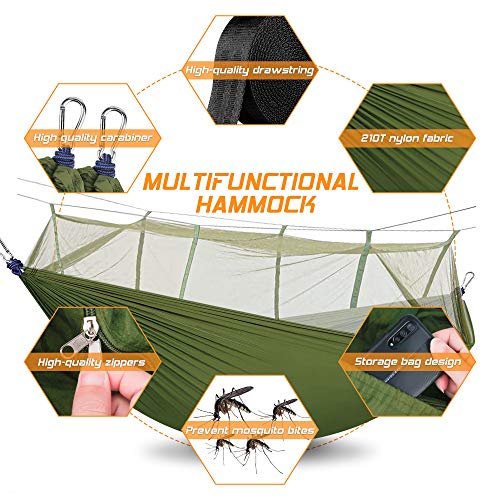 - 【Anti-Zanzare e Insetti】Con la zanzariera traspirante,una rete a maglie piccole e dense può prevenire efficacemente le punture e le molestie di zanzare e insetti. Se hai bisogno di una normale amaca d'albero, ruotare l'amaca di 180 ° per mettere la rete sul fondo, quindi diventa un'amaca normale.Cerniera doppia di alta qualità, apertura dall'interno o dall'esterno