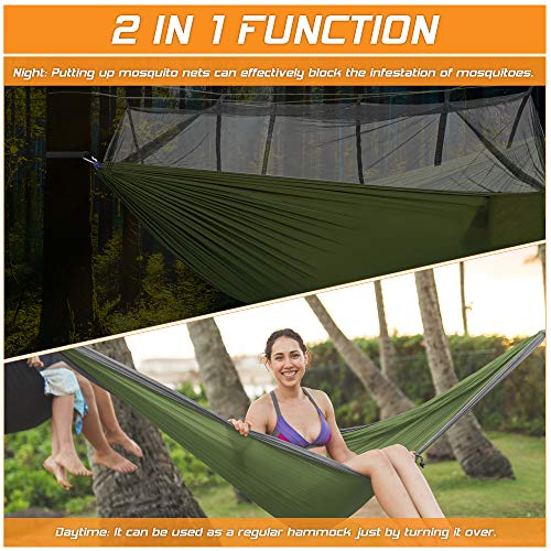 Amaca da Campeggio con Rete Zanzariera 260*140cm Amaca portatile con Zanzariera Capacità di Carico 200kg Traspirante Amaca da Esterno Nylon da Paracadute ad Asciugatura Rapida per Escursioni