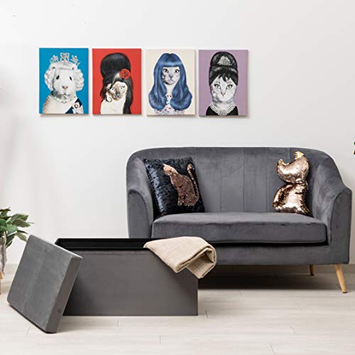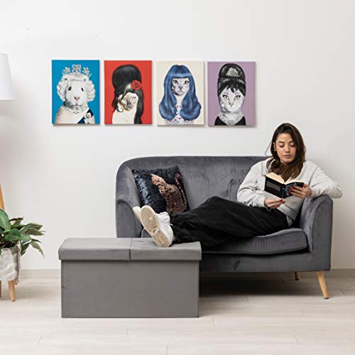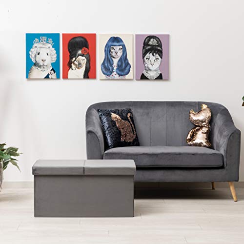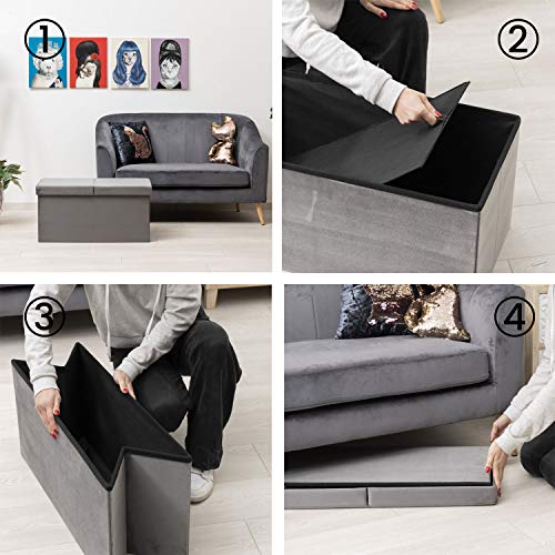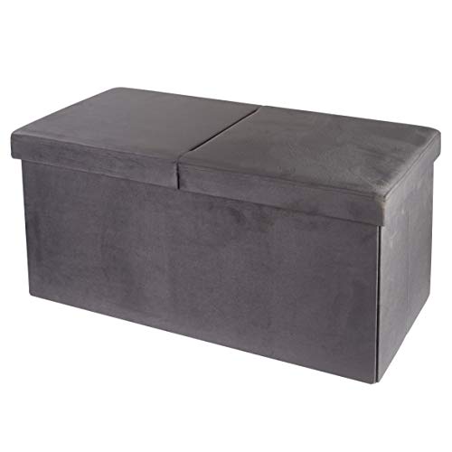 Baroni Home Cassapanca Pieghevole, Contenitore Portaoggetti, Pouf Poggiapiedi Velluto Grigio 76x38x38 cm