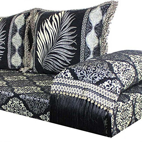 - Il design elegante e senza tempo del nostro divano marocchino Ankara invita a sognare e rilassarsi e ha un effetto particolarmente lussuoso grazie al contrasto nero e argento. Le lunghe frange sui cuscini dello schienale conferiscono al divano un aspetto molto elegante e armonioso.