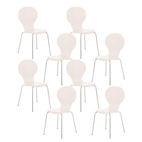 CLP Set 8 Sedie Impilabili Diego in Legno Robusto I Sedia Attesa con Telaio in Metallo I Sedia Ergonomica E Facile da Pulire, Colore:Bianco