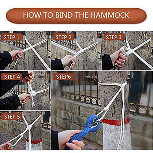 - ✔ Prodotto con materiale di alta qualità e resistente! Tela ispessita confortevole e indossabile + barre di rinforzo in legno di prevenzione del ribaltamento + corde di cotone resistenti + cinghie di amaca in poliestere resilienti + moschettoni in acciaio al carbonio