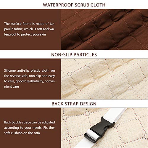 Fibra impermeabile super fine, con imbottitura in fibra di poliestere 100% e elastico regolabile da 2,5 cm, la parte posteriore è inoltre dotata di punti in gomma antiscivolo, che riducono notevolmente lo scivolamento del divano.