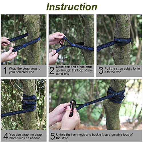 Installazione rapida e sempliceIl nostro pacchetto include cinturini per amache e moschettoni per una facile installazione. Ci vorranno meno di 1 minuti per appendere l'amaca da campeggio su un albero o oggetti vicini usando le cinghie dell'amaca. Una borsa attaccata rende l'imballaggio rapido e semplice.