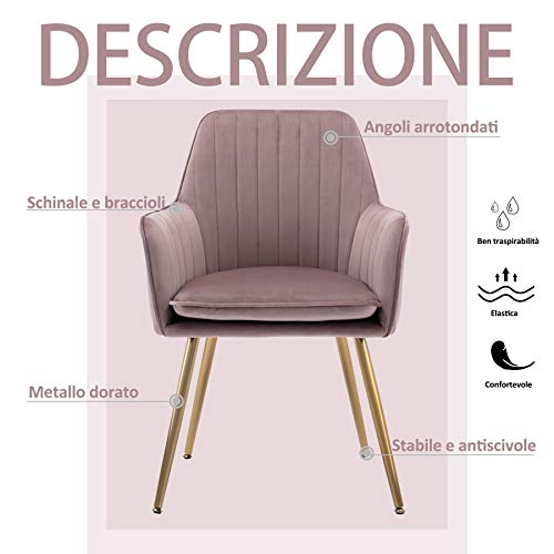 - MATERIALE:La fodera in tessuto velutto ad alta qulità con ben cucitura e le gambe in metallo dorato abbelliscono gli interni in un design glam, moderno e tradizionale. Imbottite con spugna ad alta densità , le sedie garantiscono sensazione della seduta confortevole per tutti tempo.