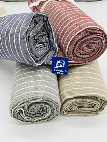L'EMPORIO CASA Telo Copridivano Copripoltrona Rigato Tela Grossa Robusta in Panama 160X260-260x280-360x280 Misure Maxi Lenzuolo Copritutto in Cotone Granfoulard Made Italy