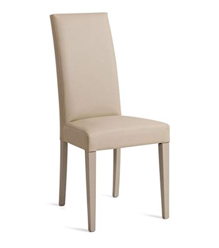 Dettagli: Sedia da cucina, sala da pranzo, salotto, ristorante, bar, con fusto in legno di faggio laccato,gambe in tinta con imbottitura della seduta e dello schienale, imbottitura in espanso ed ecopelle. Misure: H 100 - P 57 - L 46 - H SEDUTA 46 (CM.). Set da 2 sedie, anche differente colore a richiesta (contattare il servizio clienti al 377 4111398 per eventuali personalizzazioni o per quantità diverse di multipli di 2).