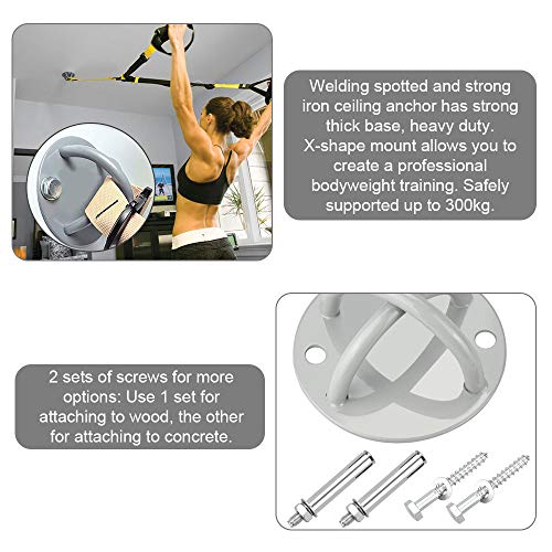 - Utilizzo universale: utilizzabile come gancio da soffitto è perfetto per poltrone, amache, altalene, sacchi da boxe, telo da yoga, tendone da sole, amaca o per appendere qualsiasi altro oggetto pesante di un supporto Overhead