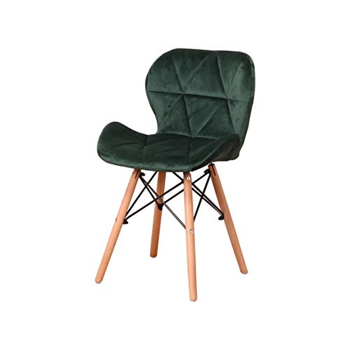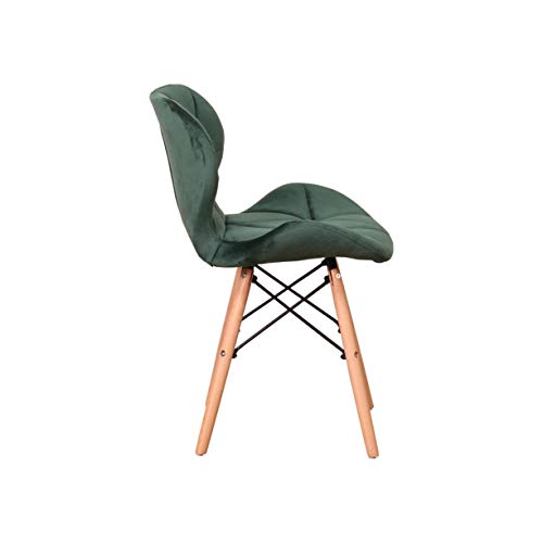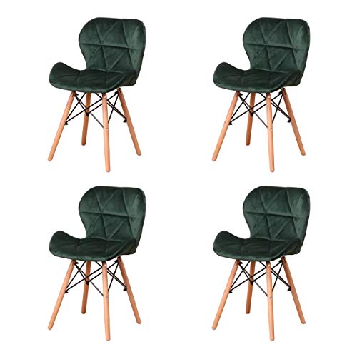 Sedia da pranzo in velluto con gambe in legno massello e telaio per sedie ergonomiche, imbottitura in spugna, semplice e nobile, set da 4 pezzi, colore verde scuro