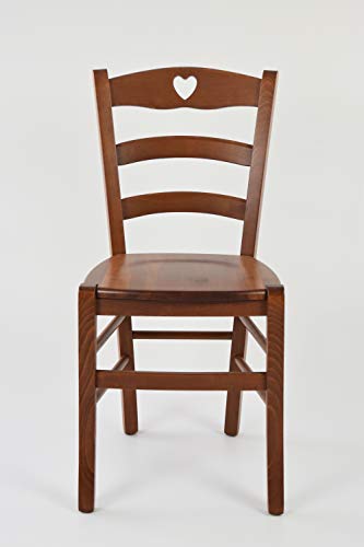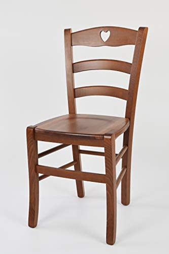 Dettagli: La sedia Cuore è perfetta per la cucina e la sala da pranzo, grazie al suo design tradizionale ed elegante che conferisce alla sedia uno stile unico. Materiali: struttura robusta e di alta qualità in legno di faggio e seduta in legno. Dimensioni: altezza totale 88 cm, larghezza totale della sedia 43 cm, profondità totale della sedia 46 cm, profondità della seduta 37 cm, altezza della seduta 47cm. Dal momento che è un prodotto artigianale, le misure possono variare leggermente. Portata: max. 120 kg con peso uniformemente distribuito sul sedile. L'ampio sedile e l'alto schienale contribuiscono ad un elevato livello di comfort. La sedia viene consegnata completamente assemblata. I materiali di prima scelta e la realizzazione interamente a mano in Italia offrono un articolo di alta qualità e resistente all'usura, garantendo una lunga durata.