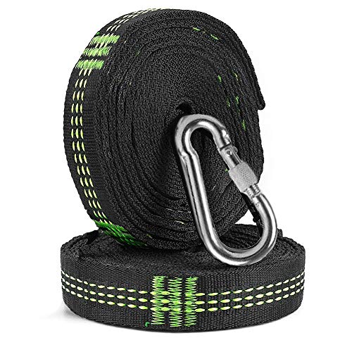 - Cinghie extra-lunghe: ogni cinghia è lunga fino a 9,8 piedi e puoi avvolgerla più volte attorno al tronco di un grande albero per assicurarti che non scivoli via.
