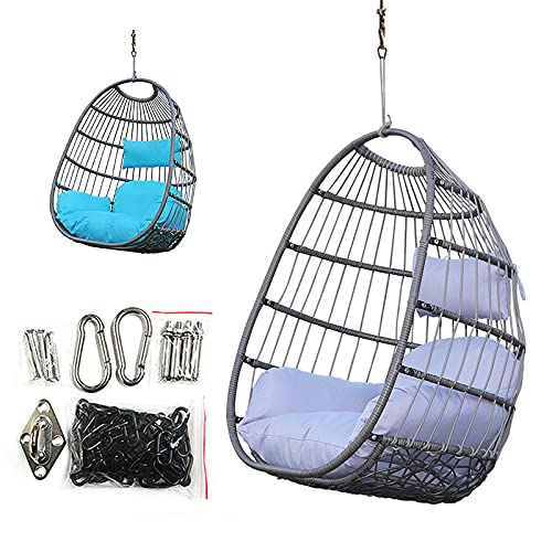 WGFGXQ 2021 Upgrade Rattan Swing Egg Chair Garden Patio Indoor Outdoor Hanging Chair con Cuscino e Copertura per Giardino Esterno Interno Senza Supporto