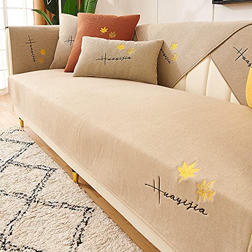 YUTJK Mat sofà di Lino Ricamato Foglia di Acero,Inizio Cuscino del Divano in Tessuto di Copertura del Tovagliolo,Molle Eccellente del Sofà del Copertura della Sedia,Beige_45×45cm(Cuscino/con Anima)